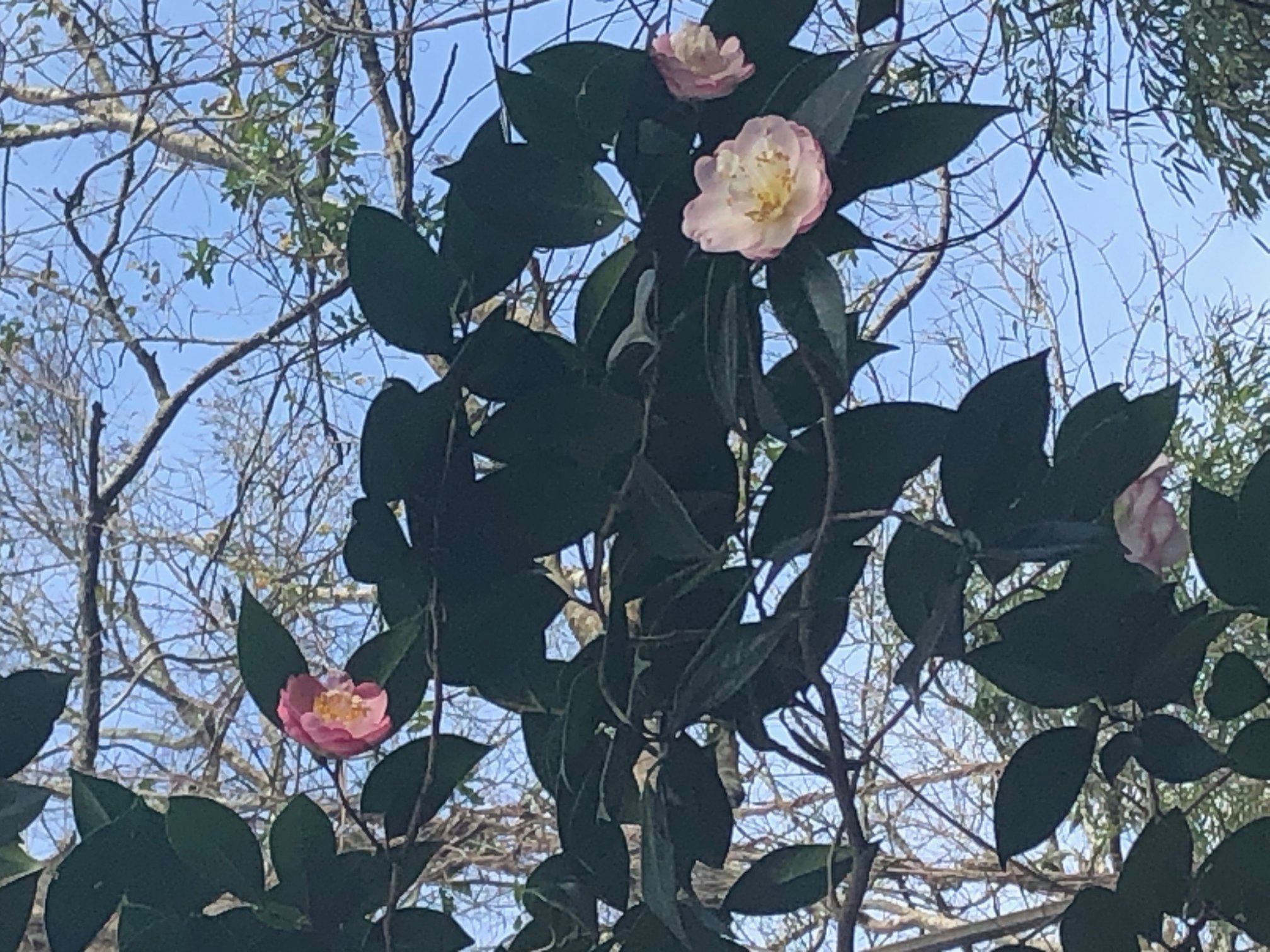 It was late in the blooming season of last year when we first noticed a few camellias inside a thick bamboo grove. At that time, a casual inspection of the plants nearest to the road suggested there might be about a half dozen large camellias. The bamboo was so thick that venturing far into the grove was not possible. Essentially nothing more was visible beyond the first few camellias due to the density of the bamboo.