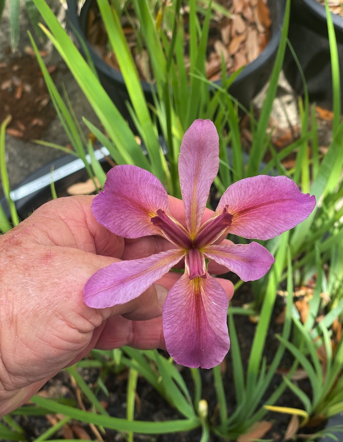Cultivating Louisiana Irises became one of Patrick’s many passions. He has developed a splendid collection of native species and their cultivars at his home. Earlier this year (2022) he reached out to me and told me the story behind the “Boat House” Iris that he has been growing for nearly 50 years. When I told him that it no longer grew near the Boat House nor anywhere else in Jungle Gardens, he was determined to bring some back to the Island.